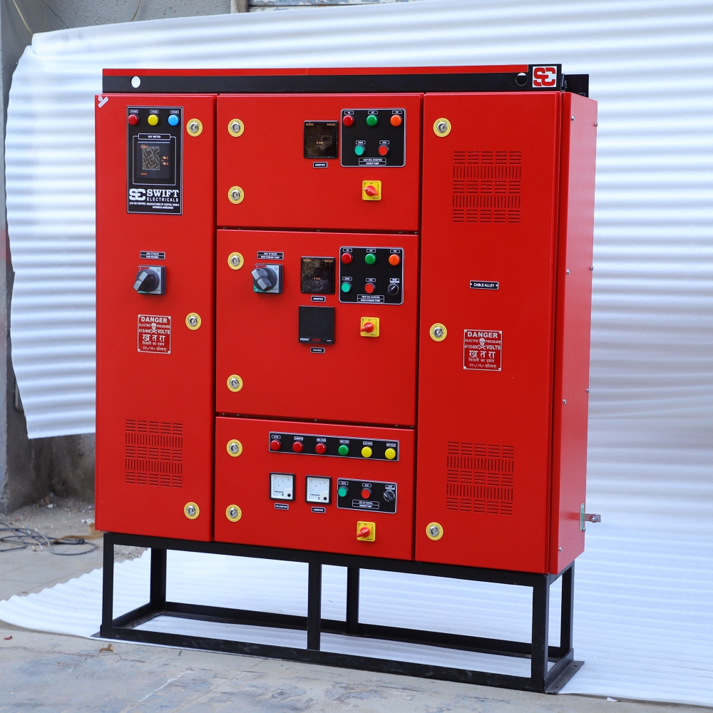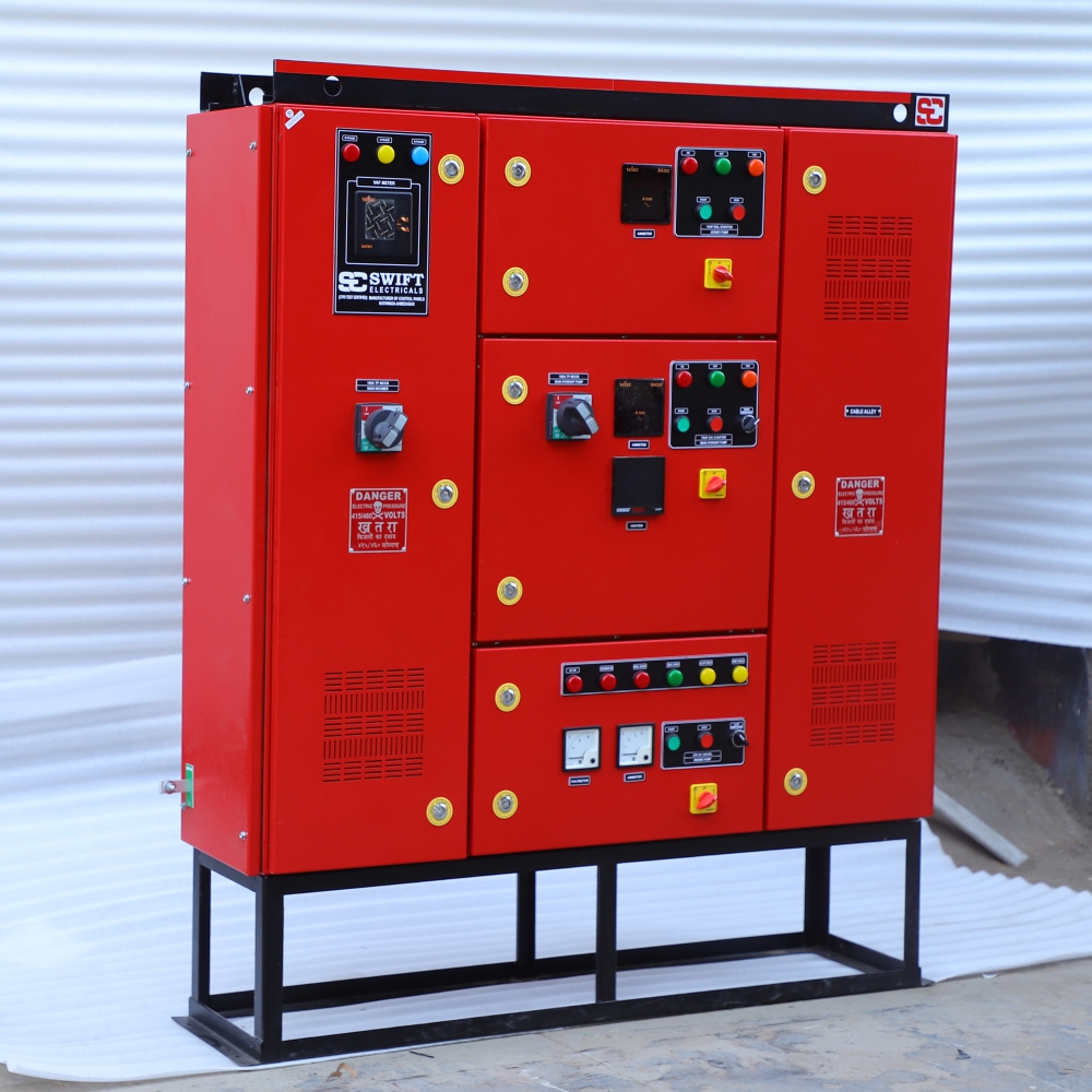 The COMBINE PUMP (Main + Jockey + Jockey) Panel – Stand Mounted – Industrial is a robust, reliable, and industrial-grade control panel designed to manage one main pump and two jockey pumps within a single stand-mounted enclosure. Built for heavy-duty use, it ensures durability, long service life, and consistent performance even in the most demanding environments. The dual jockey pump system offers redundancy and balanced load management, maintaining constant system pressure while reducing pump wear. With its rugged construction, advanced protections, and user-friendly operation, this panel is perfectly suited for large-scale industrial plants, manufacturing facilities, and critical infrastructure projects.