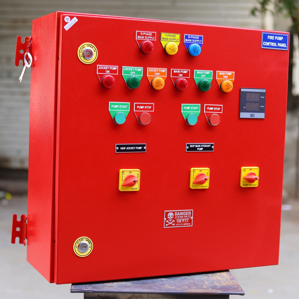 The COMBINE PUMP (Main + Jockey) Panel – Wall Mounted is a compact, reliable, and user-friendly control system designed to operate and monitor both the main fire pump and the jockey pump within a single enclosure. It is specifically engineered for fire-fighting and industrial applications where space optimization, safety, and performance are critical. With its wall-mounted design, it provides ease of installation, better accessibility, and a neat appearance, making it suitable for a wide range of commercial, industrial, and residential projects.
